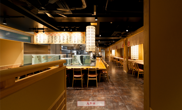 名物の大きな水槽で泳ぐ鮮度抜群の活魚と